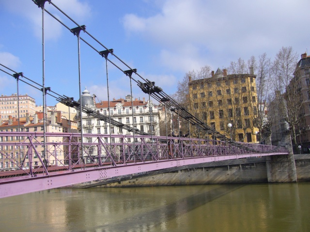 目の前にはソーヌ川に架かる紫色の橋が。